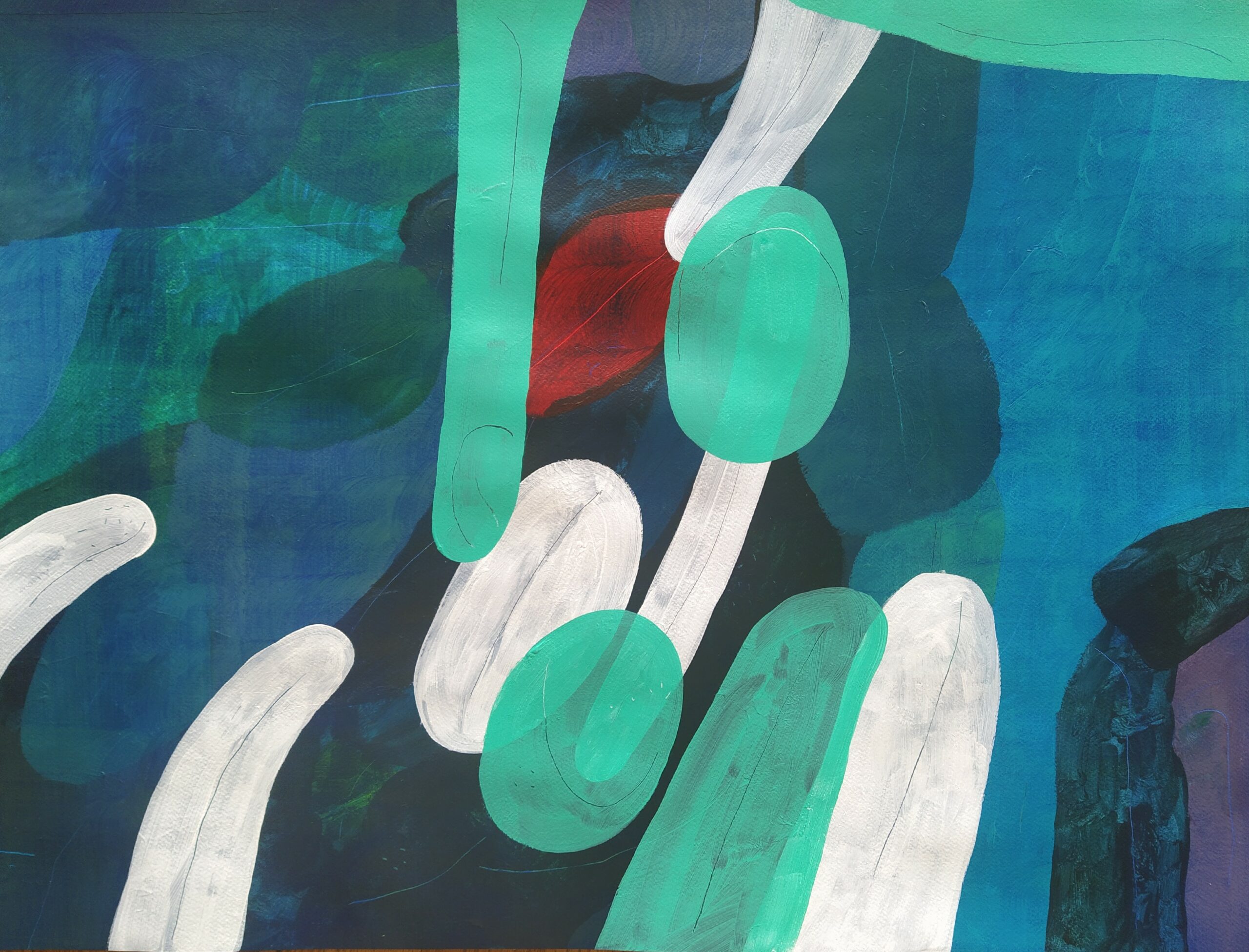 Dans la genèse de mon œuvre abstraite, tant la peinture que la sculpture, l’essence réside dans l’exploration de la mémoire et de l’inconscient, profondément enracinée dans l’histoire de ma famille. Cette dimension autobiographique, loin de se limiter à une simple narration personnelle, s’élargit pour interroger des thématiques universelles, telles que le transgénérationnel, la transmission, l’identité, le lien et le deuil.